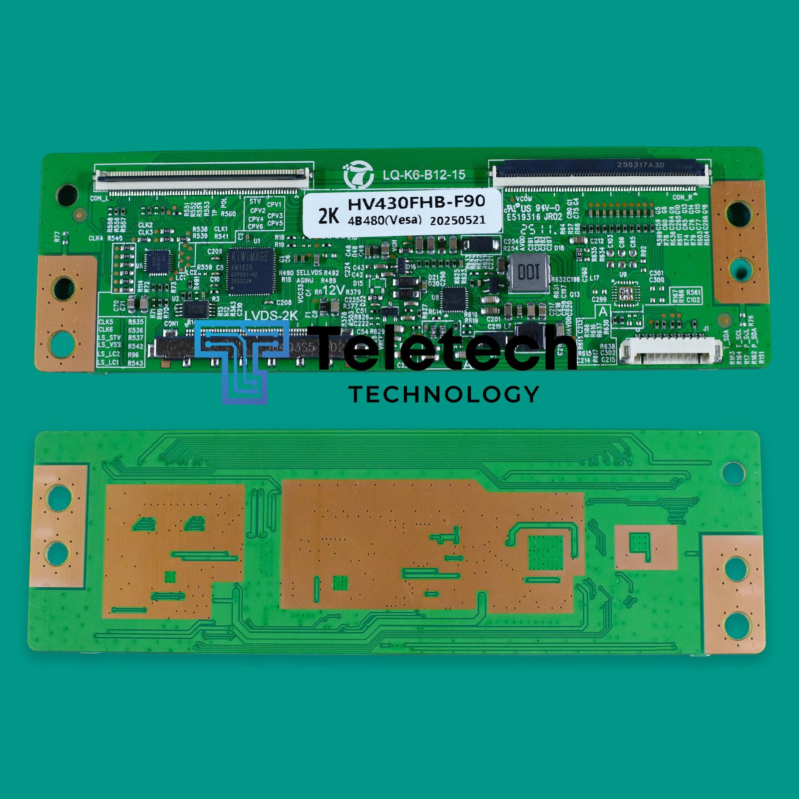Le numéro de pièce HV430FHB-F90 identifie le panneau d’affichage LCD (écran) de 43 pouces en résolution Full HD (FHD), fabriqué par BOE. La T-CON sert d’interface entre la carte mère du téléviseur et ce panneau spécifique. Son rôle est de recevoir les données vidéo de la carte mère et de les convertir en signaux de synchronisation et de tension précis pour piloter les pixels du panneau, permettant ainsi l’affichage de l’image.