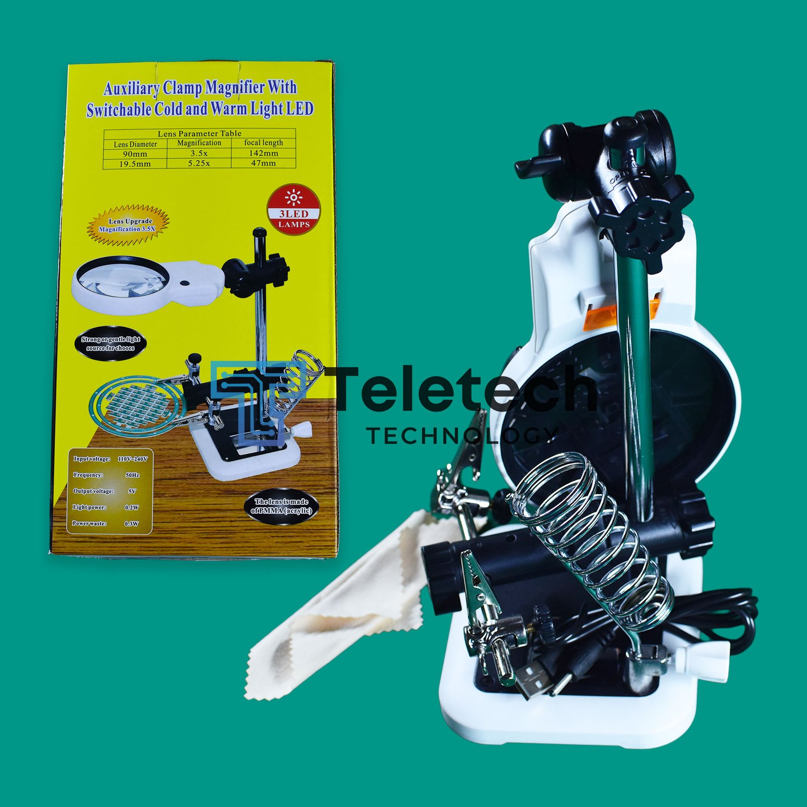 loupe avec des diamètres de lentille de 90 mm et fait généralement référence à une (parfois appelée « troisième main ») ou une qui offre deux niveaux de grossissement distincts.19,5 mm Station d’aide à la soudure loupe de lecture/travail . Cet outil est conçu pour faciliter les travaux de précision, tels que la réparation électronique, le modélisme, la bijouterie ou la lecture de petits caractères. Il est souvent équipé d’un éclairage pour améliorer la visibilité.